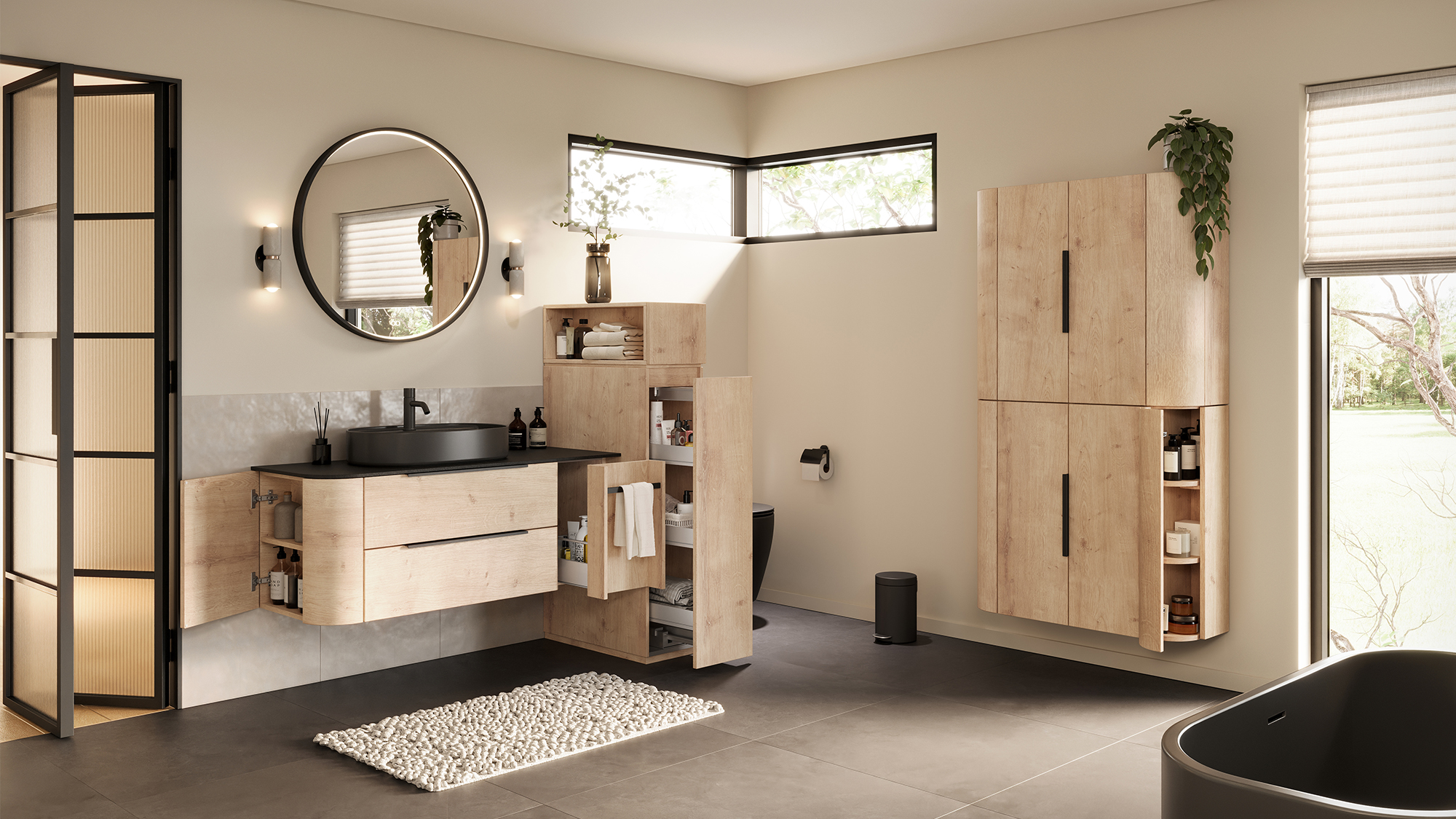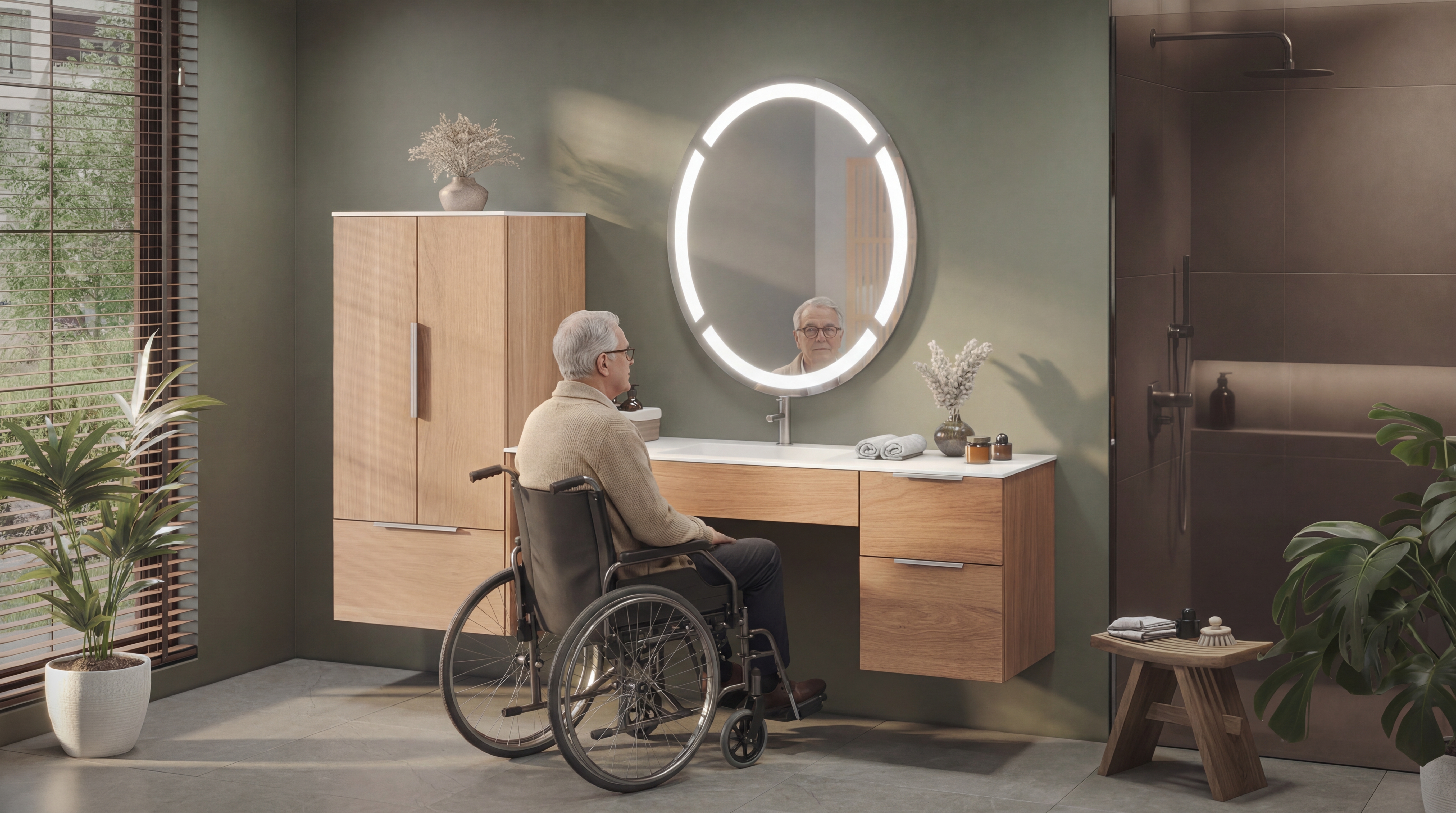 Barrierefreie Waschtischlösungen bieten dabei Komfort, der sich selbstverständlich anfühlt – intuitiv, durchdacht und für alle Lebenssituationen gemacht. Organische Möbel und raffiniert integrierte Stauraumlösungen sorgen für Leichtigkeit im Alltag und bringen zugleich eine neue Eleganz in den Raum.